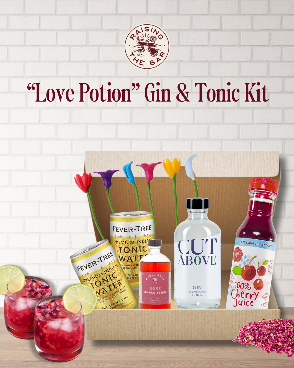 Our Love Potion Gin & Tonic Kit is reimagines the classic G&T with notes of bright cherry, soft rose, and crisp tonic coming together in a perfectly balanced sip. It’s playful but polished, romantic without trying too hard, and super easy to whip up.