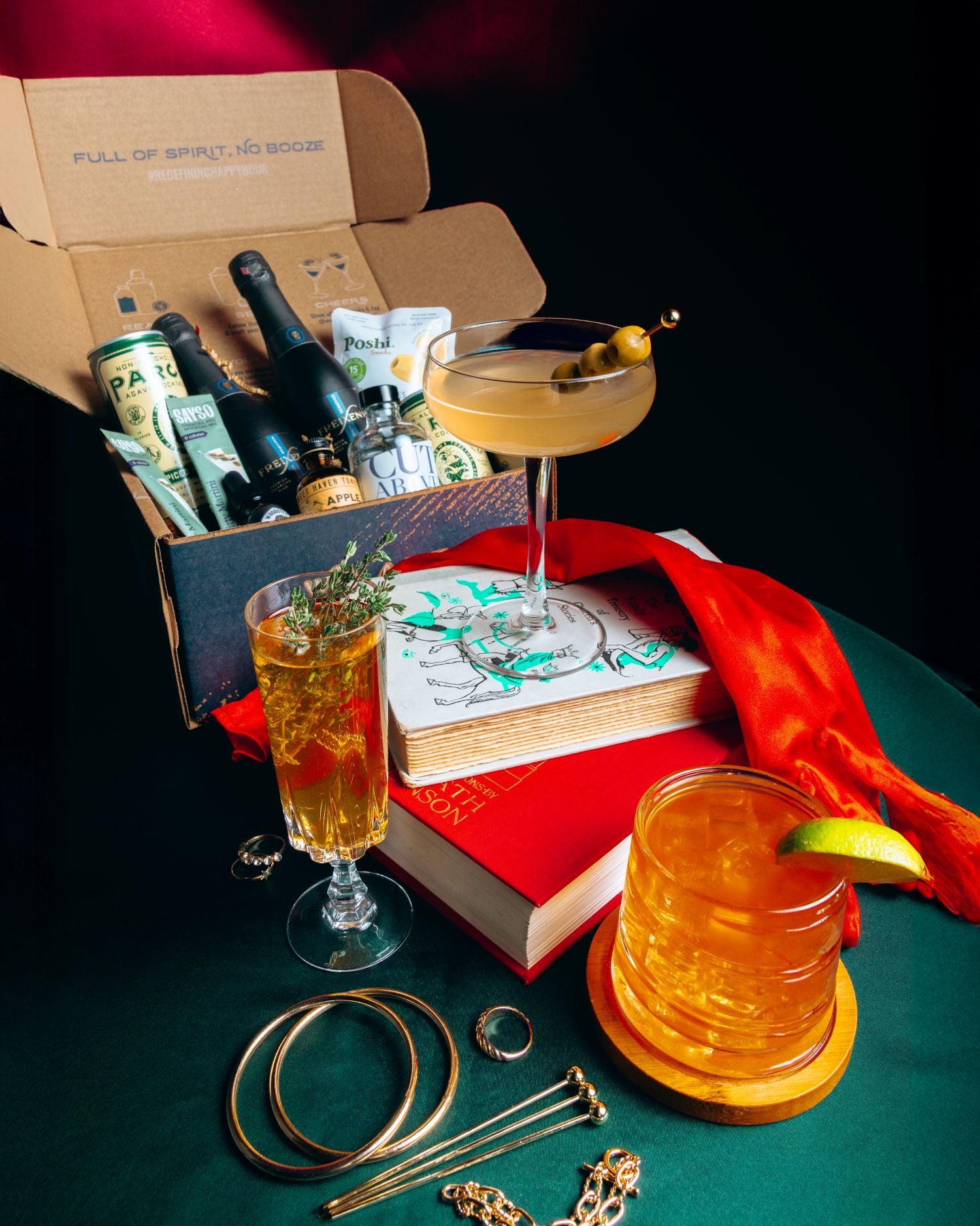 1x Cut Above NA Gin - A clean, botanical zero-proof gin with citrus and juniper notes that bring classic martini character without the alcohol.
