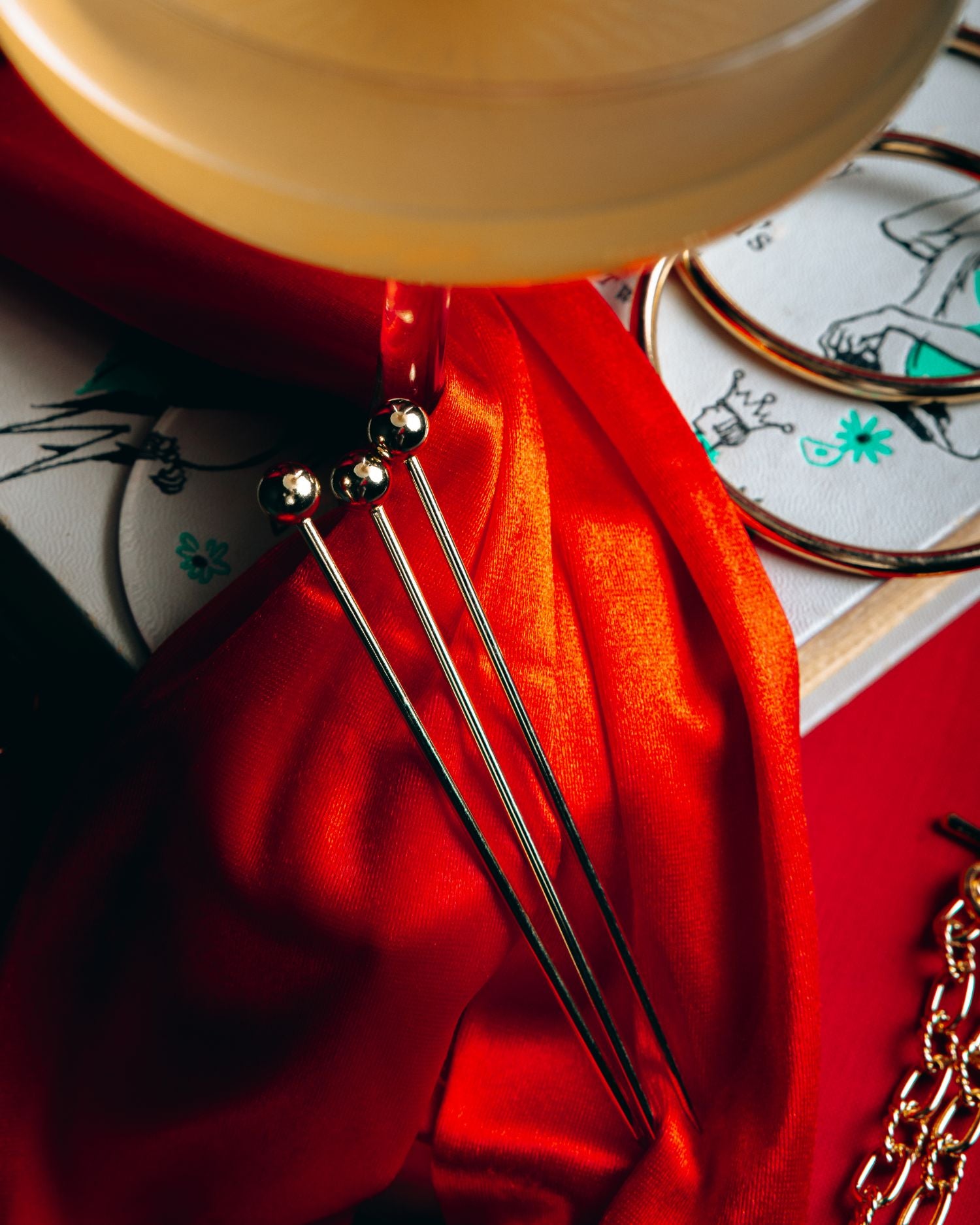 1x Raising The Bar Cocktail Picks (4ct) - Polished gold picks made for garnishing with style.